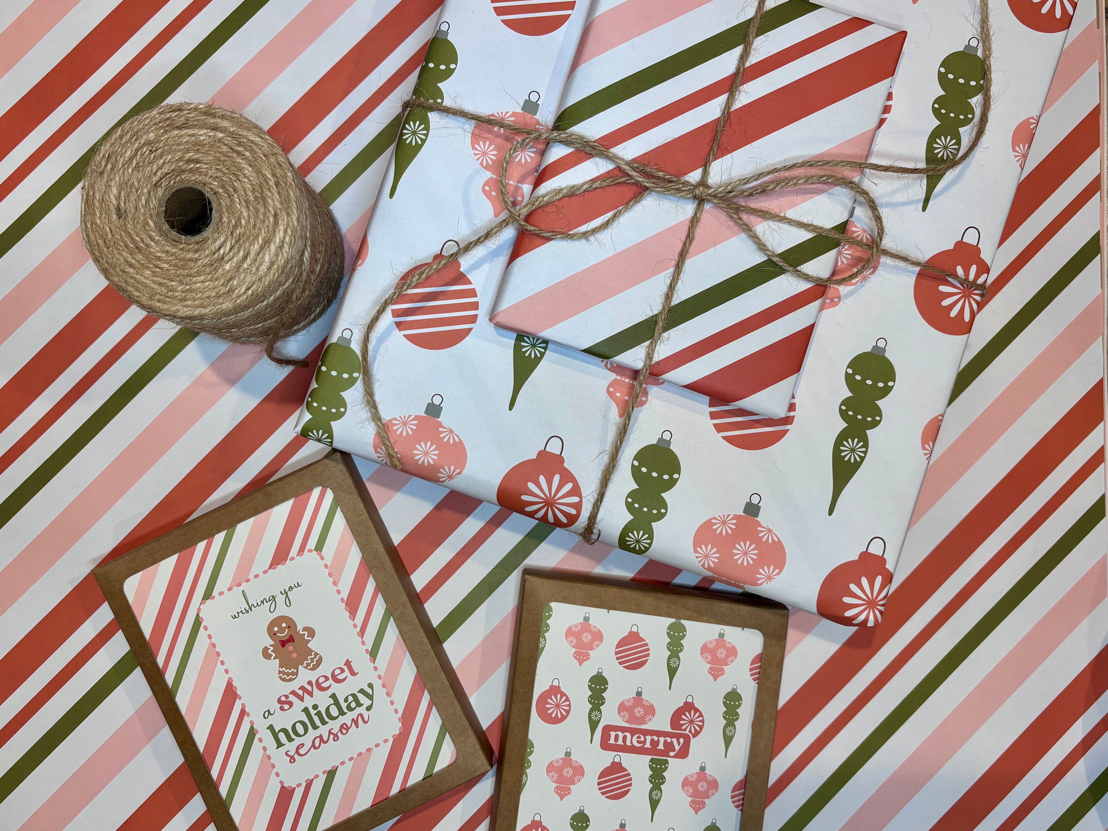 Double Sided Wrapping Paper in Ornament-Candy Stripe